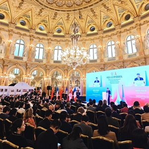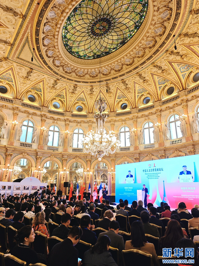 5月4日拍摄的中法人文合作发展论坛会场。本次论坛在巴黎举办,是中国国家主席习近平对法国进行国事访问之际举办的一次人文交流盛会,吸引了来自中法两国的政府官员、专家学者、主流媒体、经贸企业等250余名代表出席。杨磊 摄