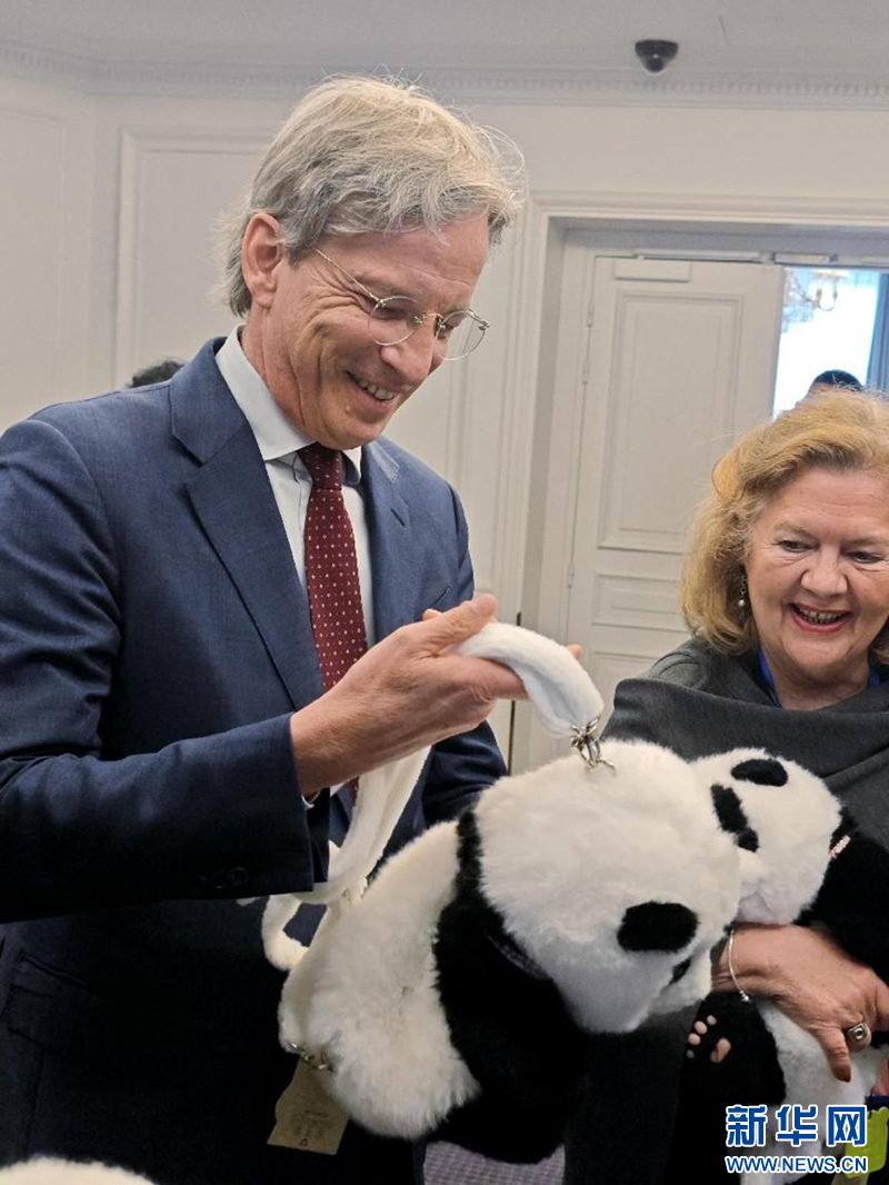 5月4日,出席中法人文合作发展论坛的法新社社长法布里斯·弗里对大会赠送的熊猫纪念品喜爱有加。杨磊 摄