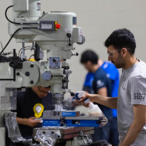 5月6日,在加拿大多伦多举行的安大略省学生技能大赛中,一名学生参加精密加工比赛。