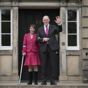 5月7日,在英国苏格兰爱丁堡,约翰·斯温尼偕夫人抵达官邸。