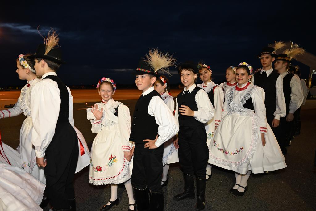 两名身着民族服装的匈牙利儿童向习近平主席夫妇献上面包和盐,用传统礼节欢迎最尊贵的客人。匈中双语学校的学生向习近平夫妇献花,并用中文说:“欢迎您来到匈牙利”。少年儿童跳起欢快的民族传统舞蹈查尔达什舞曲,向习近平表达最热烈的欢迎。