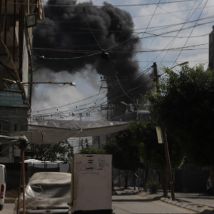 5月13日,在加沙地带北部杰巴利耶难民营,以军轰炸后升起浓烟。 新华社发(阿卜杜勒拉赫曼·萨拉马摄)