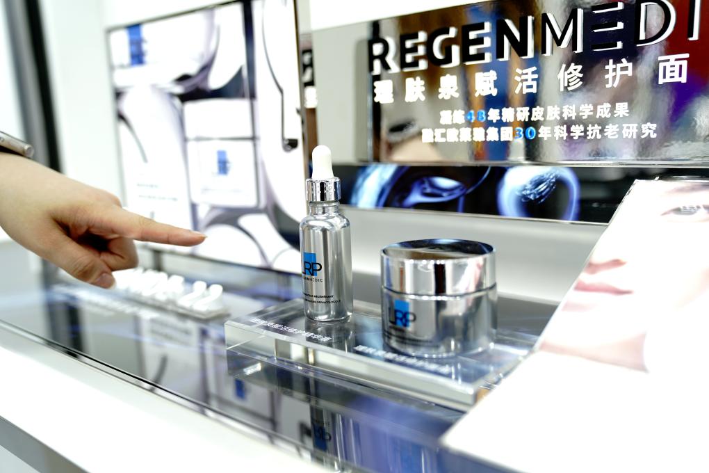2023年11月5日,在第六届进博会消费品展区欧莱雅展台,工作人员介绍一款全球首发的新产品。新华社记者张建松摄