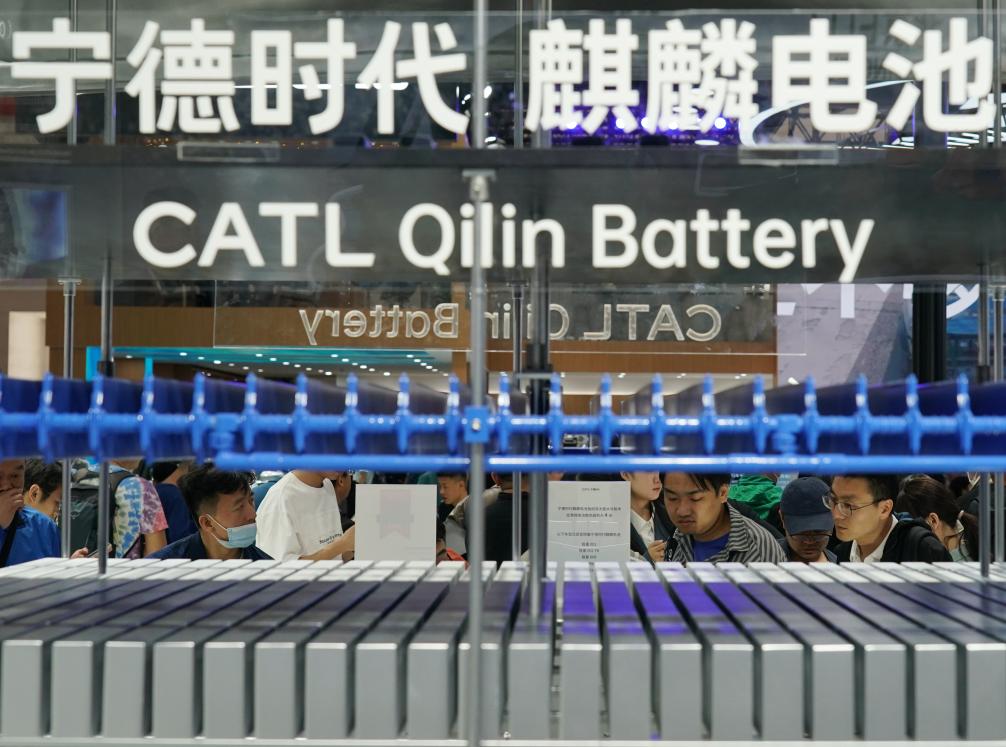4月30日,在北京车展上,观众在宁德时代展区参观。新华社记者 张晨霖 摄