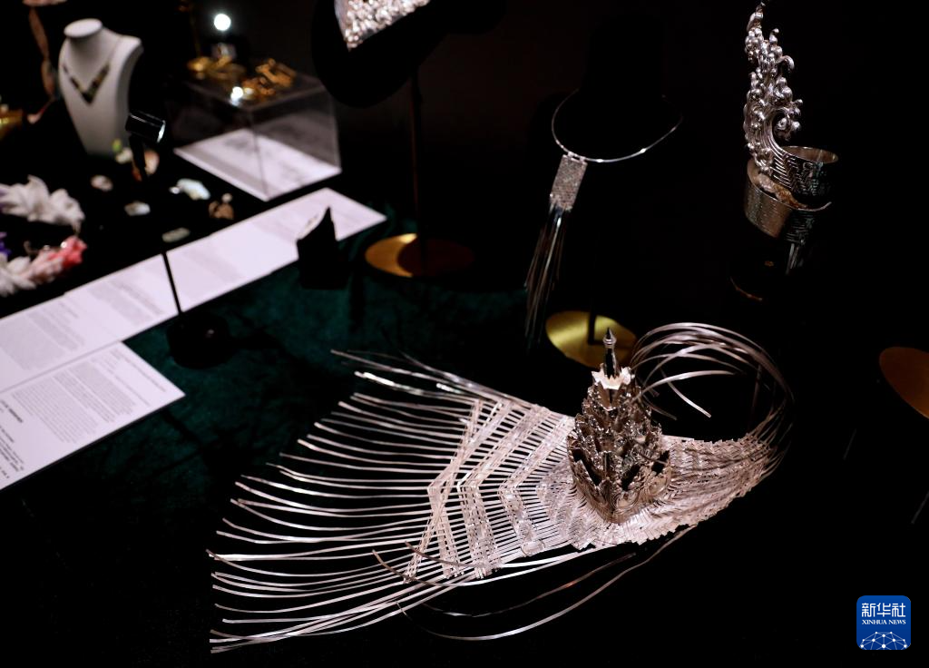 5月13日,在英国伦敦手工艺周“设计中国·和韵华夏”主题展上,中国手工艺人展示非遗技艺苗绣作品。