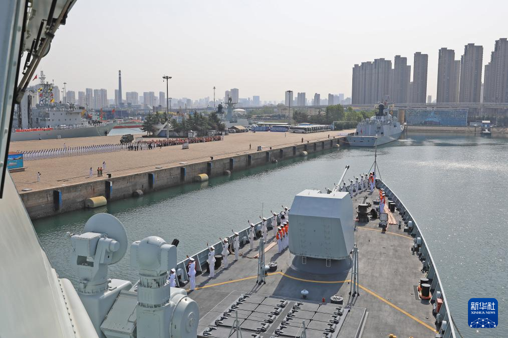 5月17日,中国海军第45批护航编队完成任务返回山东青岛。新华社发(王远方 摄)