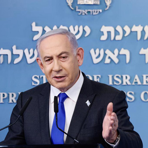 2月7日,在位于耶路撒冷的以色列总理办公室,以色列总理内塔尼亚胡在新闻发布会上讲话。新华社发(马克·伊斯拉埃尔·塞勒姆摄/基尼图片社)