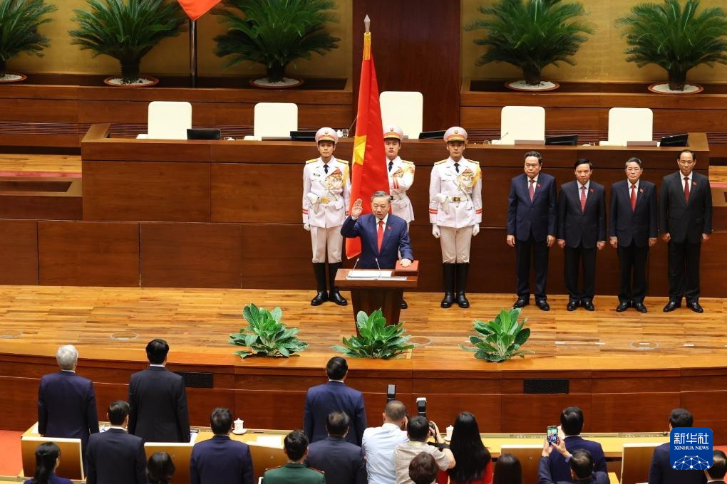 新华社河内5月22日电(记者孙一)据越南国家电视台22日报道,经越南第十五届国会第七次会议当天投票表决,越共中央政治局委员、公安部长苏林当选新任国家主席,苏林随后宣誓就职。