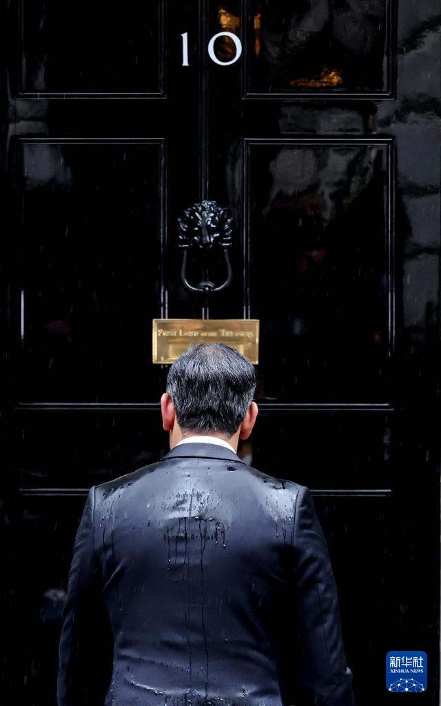 5月22日,英国首相苏纳克在伦敦唐宁街10号首相府前发表讲话后返回室内。