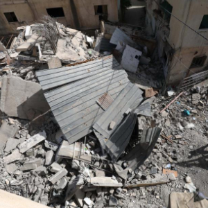 5月23日,在约旦河西岸城市杰宁,一名男子查看建筑受损情况。