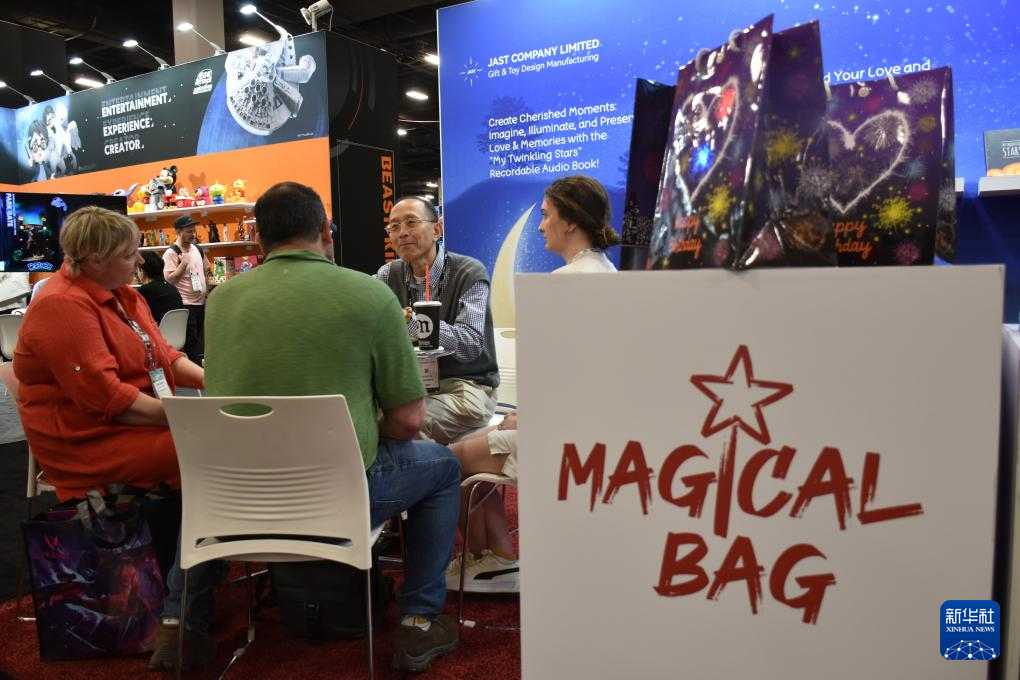 5月22日,在美国拉斯维加斯举行的2024美国拉斯维加斯国际品牌授权博览会上,参观者在深圳佳时达礼品有限公司的展区咨询。