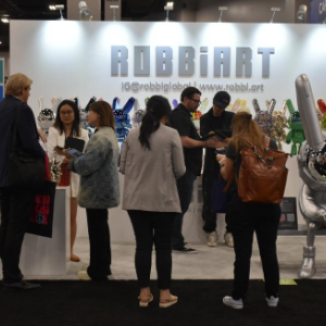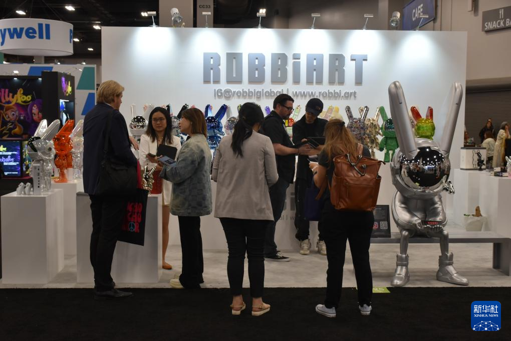5月22日,在美国拉斯维加斯举行的2024美国拉斯维加斯国际品牌授权博览会上,参观者在上海又燃又兔文化传播有限公司的展区咨询。