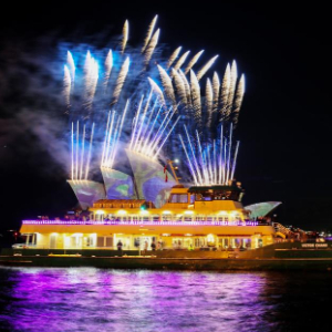 这是5月24日在澳大利亚悉尼拍摄的“缤纷悉尼”灯光音乐节开幕式焰火表演。