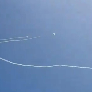 这张以色列媒体发布的视频截图显示,5月26日,以色列“铁穹”防空系统在特拉维夫上空拦截火箭弹。