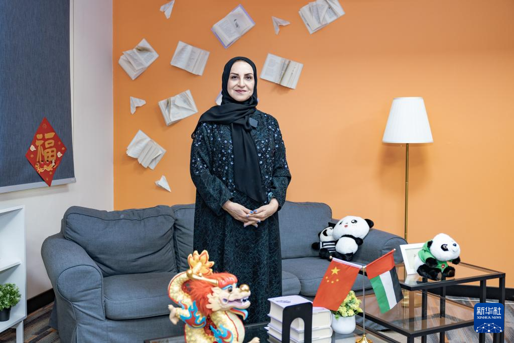 5月27日,阿联酋中文教学“百校项目”执行负责人法蒂玛·艾哈迈德·巴斯塔基在阿布扎比接受新华社记者采访。新华社发