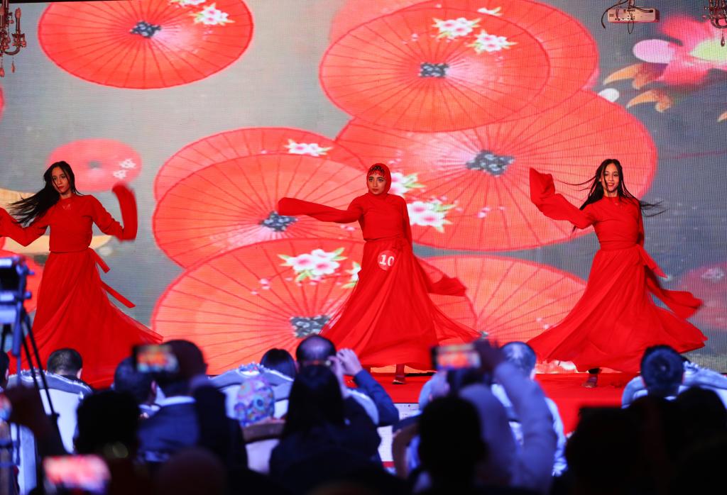 5月12日,参赛选手在埃及开罗举办的第23届“汉语桥”世界大学生中文比赛埃及大区赛上表演才艺。