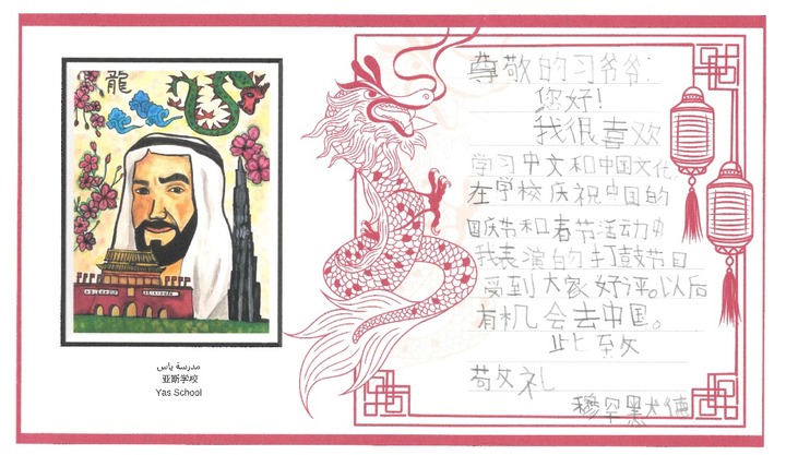近日,阿联酋中文教学“百校项目”示范校哈姆丹学校和亚斯学校40名中小学生代表分别用中文致信习近平主席,表达对中国文化的向往和热爱,立志做中阿友好的使者。习近平主席在复信中勉励他们学好中文、了解中国,“把友谊的种子根植在心里,为开创中阿关系更加美好的明天贡献力量”。
