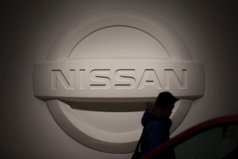 2019年1月7日,在日本横滨日产汽车公司总部,一名男子从日产标志前经过。新华社记者杜潇逸摄