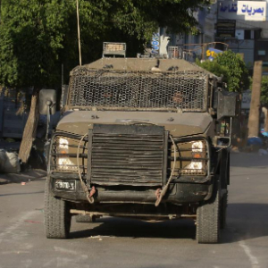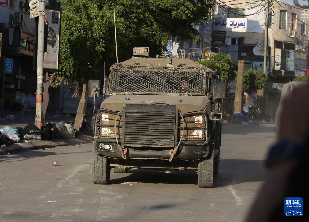 6月6日,在约旦河西岸北部城市杰宁,以军车辆驶过街头。新华社发(尼达尔·艾仕塔耶摄)