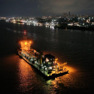 6月5日,中交上海航道局的“航浚6009”轮在哥伦比亚巴兰基亚港作业。
