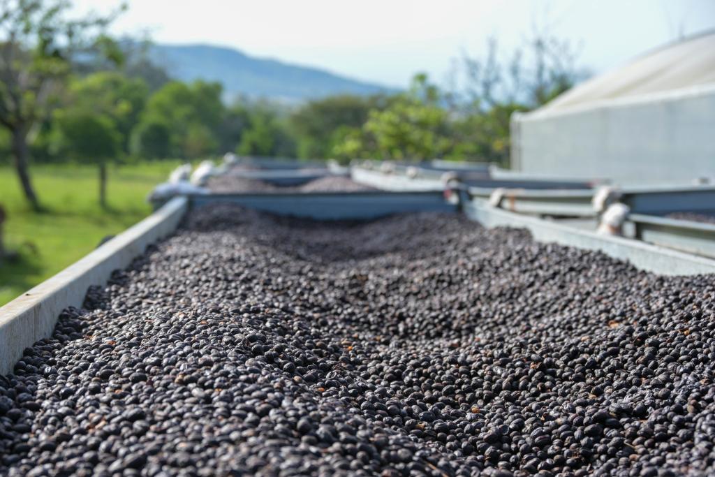 这是2月19日在位于巴拿马奇里基省博克特地区的彼德松家族庄园内拍摄的正在晾晒的咖啡豆。新华社记者陈昊佺摄