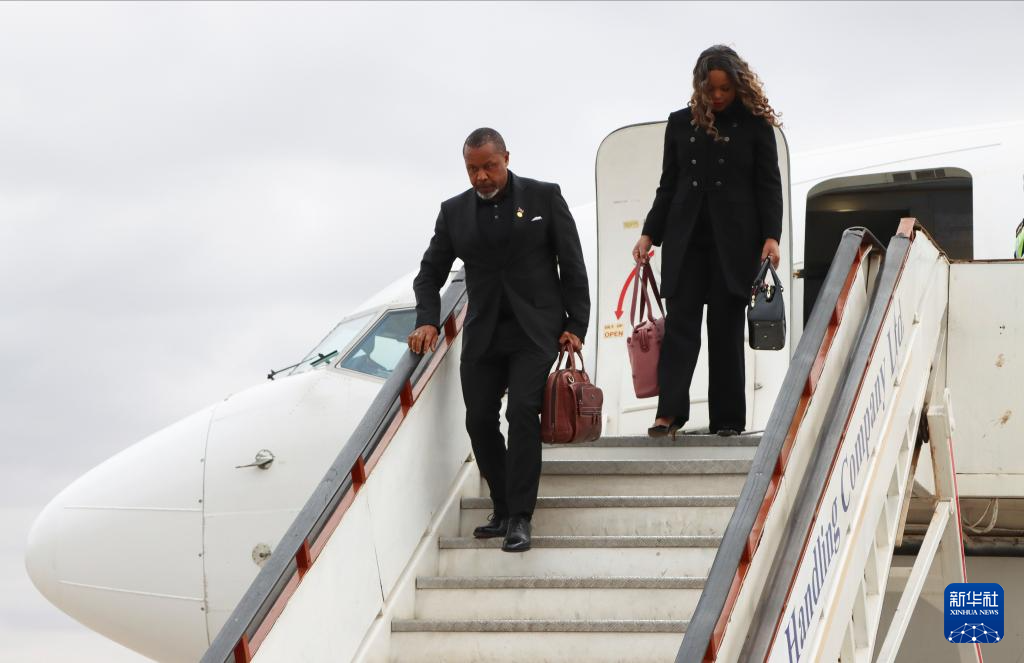 这是6月9日马拉维副总统奇利马(左)乘飞机抵达利隆圭后走下飞机的资料照片。新华社/美联