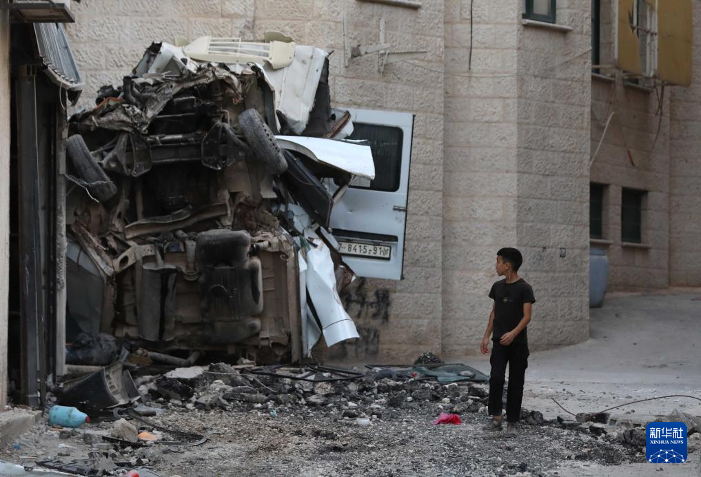 这是6月13日在约旦河西岸城市杰宁拍摄的遭以军破坏的街道。