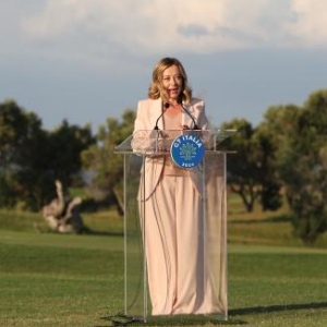 6月13日,在意大利南部普利亚大区法萨诺市,意大利总理梅洛尼向媒体介绍七国集团峰会情况。新华社记者 李京 摄