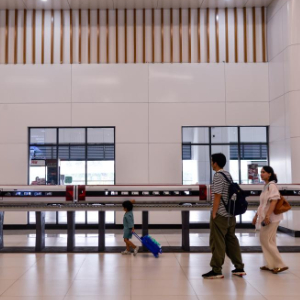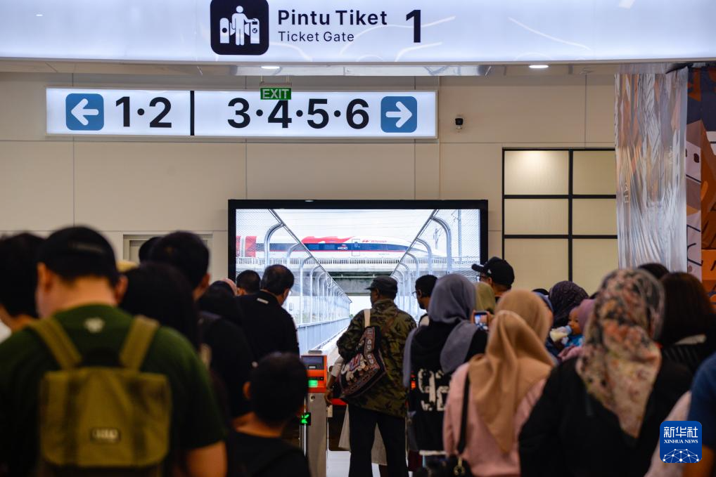 6月17日,在印度尼西亚雅加达哈利姆站候车大厅,乘客排队等候刷票进站。