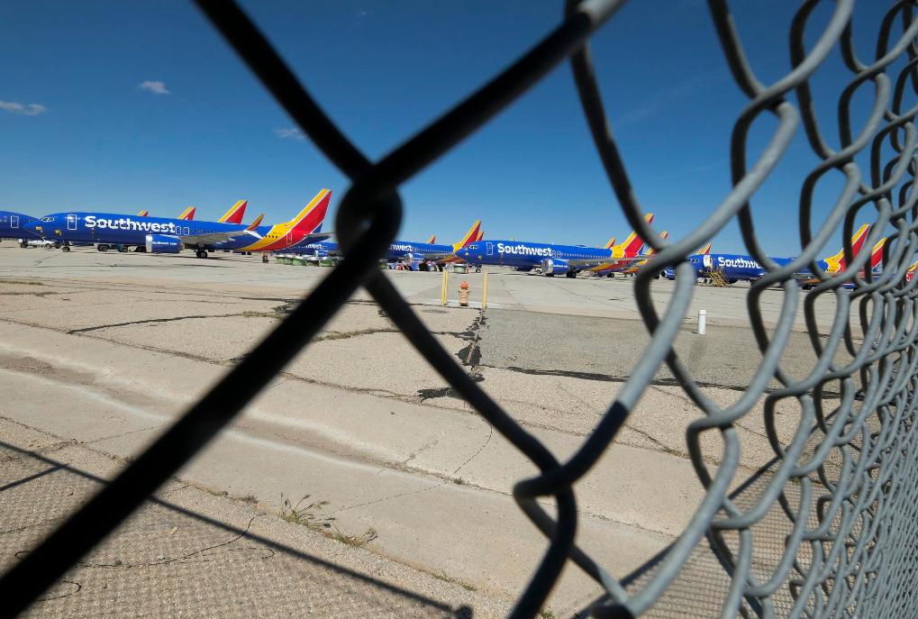 2019年3月27日,在美国加利福尼亚州维克托维尔,美国西南航空公司的波音737 MAX 8型号飞机停泊在南加利福尼亚物流机场。新华社发(赵汉荣摄)