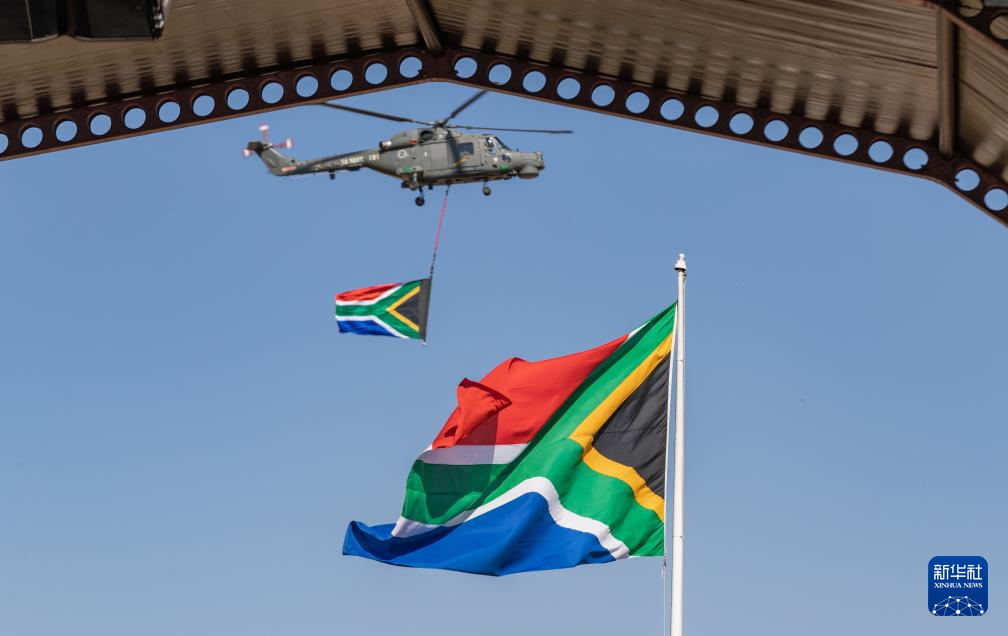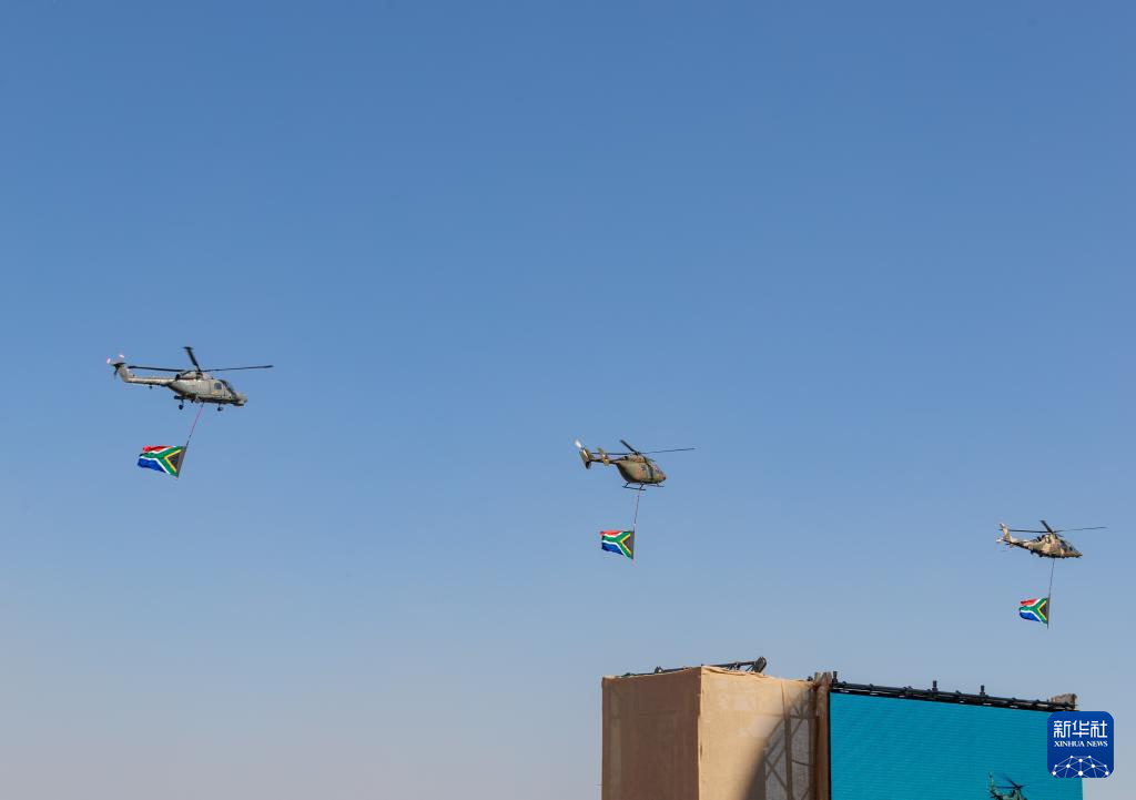6月19日,在南非比勒陀利亚,直升机在南非新任总统就职仪式上飞过。新华社记者 张誉东 摄pagebreak