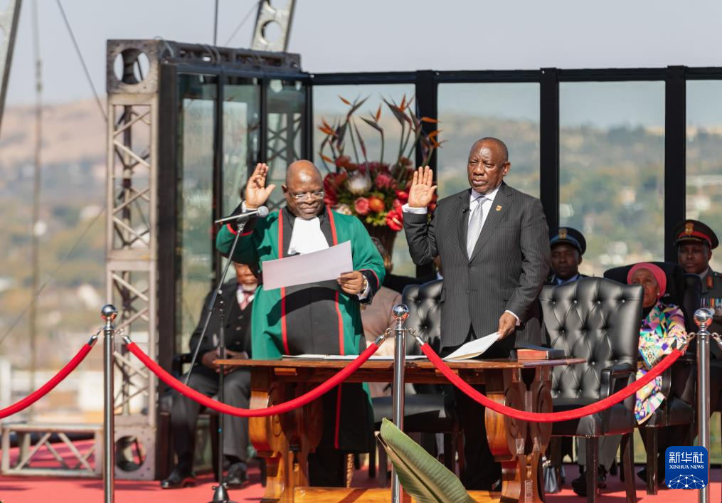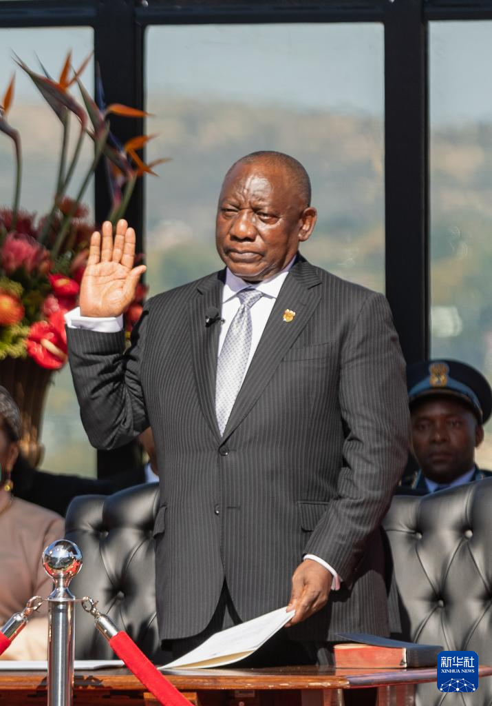 新华社约翰内斯堡6月19日电(记者谢江)南非当选总统、执政党非洲人国民大会(非国大)主席西里尔·拉马福萨当地时间19日在行政首都比勒陀利亚举行的就职典礼上宣誓就职,开启他的第二个总统任期。