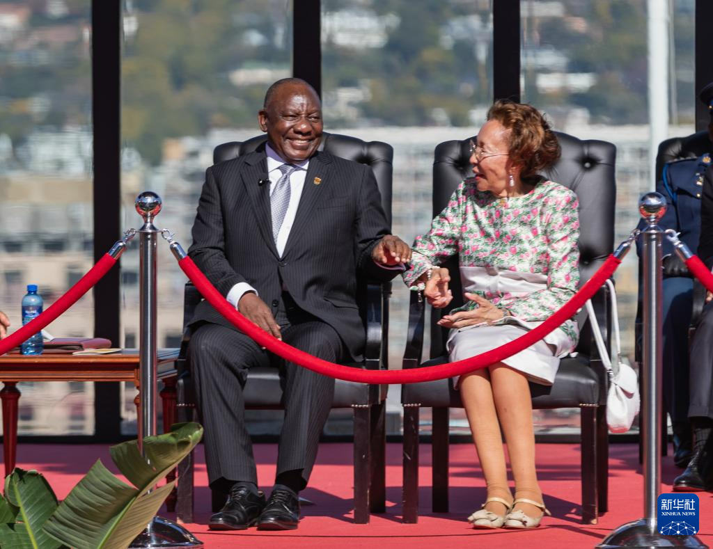 6月19日,在南非比勒陀利亚联邦大厦,南非新任总统西里尔·拉马福萨(左)与其夫人出席就职仪式。新华社记者 张誉东 摄pagebreak