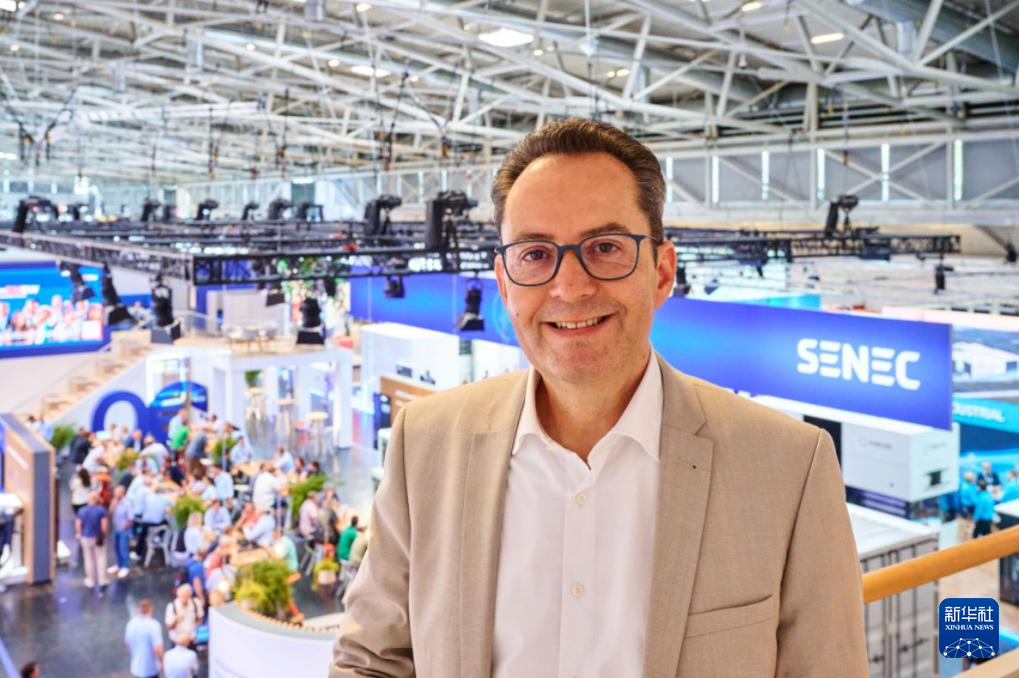 这是6月21日在2024年欧洲国际太阳能展现场拍摄的德国太阳能促进公司创始人兼首席执行官马库斯·埃尔泽塞尔。新华社发(受访者供图)