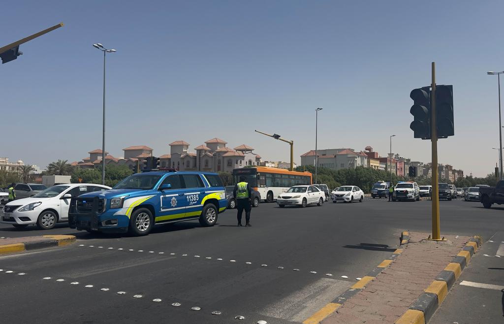 6月19日,在科威特费尔瓦尼耶省,警察在信号灯没电时指挥交通。新华社发(阿萨德摄)