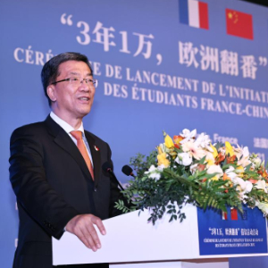中国教育部、中国驻法国大使馆、中国驻欧盟使团21日在法国巴黎共同举办“3年1万,欧洲翻番”倡议启动活动。中国教育部部长怀进鹏、驻法国大使卢沙野,法国前总理拉法兰等出席活动。