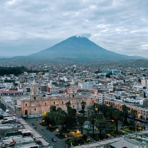 这是6月19日拍摄的米斯蒂火山脚下的秘鲁城市阿雷基帕(无人机照片)。