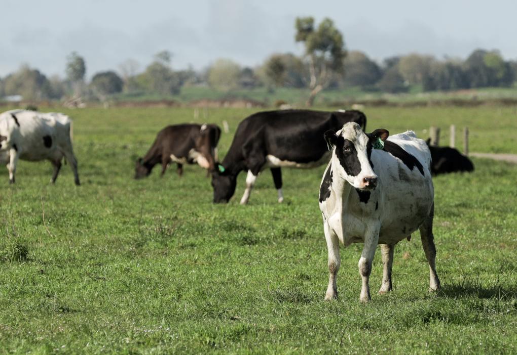 这是2019年10月4日在新西兰陶波地区拍摄的新西兰知名奶制品企业纽仕兰公司牧场内的奶牛。新华社记者郭磊摄