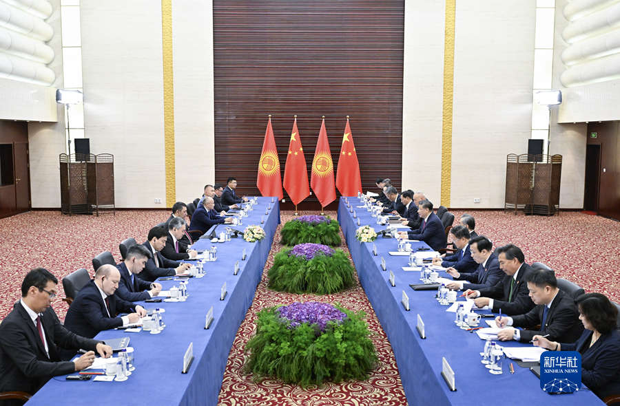 当地时间7月3日下午,国家主席习近平在阿斯塔纳出席上海合作组织峰会前会见吉尔吉斯斯坦总统扎帕罗夫。