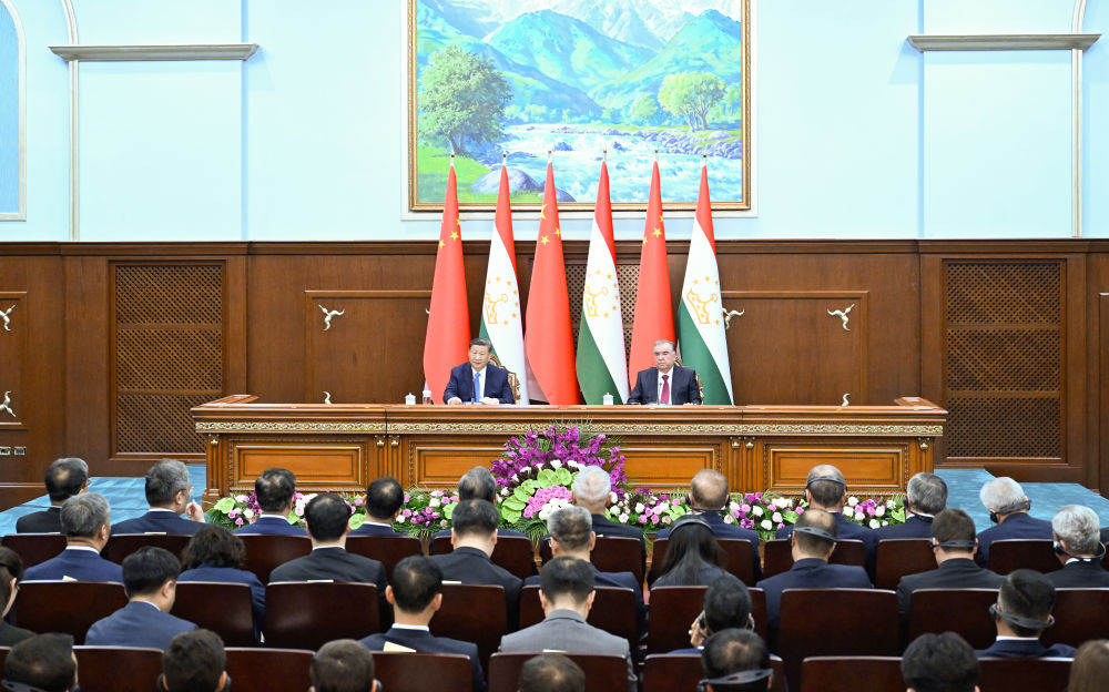 两国元首共同签署《中华人民共和国和塔吉克斯坦共和国关于发展新时代全面战略合作伙伴关系的联合声明》,并共同见证交换经贸、投资、互联互通、关键矿产、安全、人文等领域数十项双边合作文件。