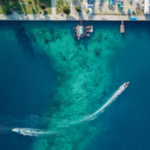 这是6月29日在瓦努阿图首都维拉港一处码头拍摄的水上巴士(无人机照片)。