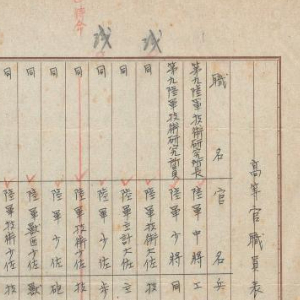 这是日本国立公文书馆藏《陆军第九陆军技术研究所高等官职员表(1945年8月15日制)》原始档案首页。