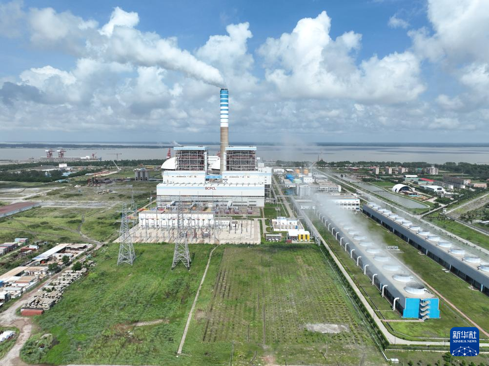 这是7月7日在孟加拉国帕亚拉拍摄的帕亚拉2×660兆瓦超超临界燃煤电站一隅(航拍照片)。 新华社发(帕亚拉电站项目部供图)