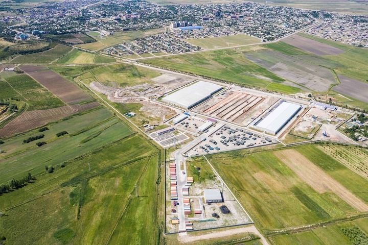 这是2019年5月21日在塔吉克斯坦丹加拉拍摄的中泰纺织厂(无人机照片)。新华社记者 张若玄 摄