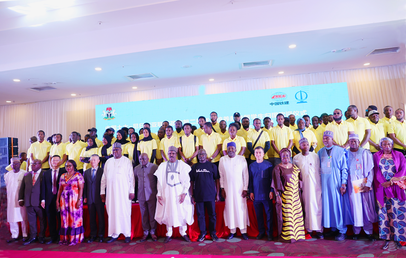 7月5日,中国土木-尼日利亚联邦政府联合培养赴华留学生学成归国欢迎仪式合影。(中土尼日利亚有限公司供图)
