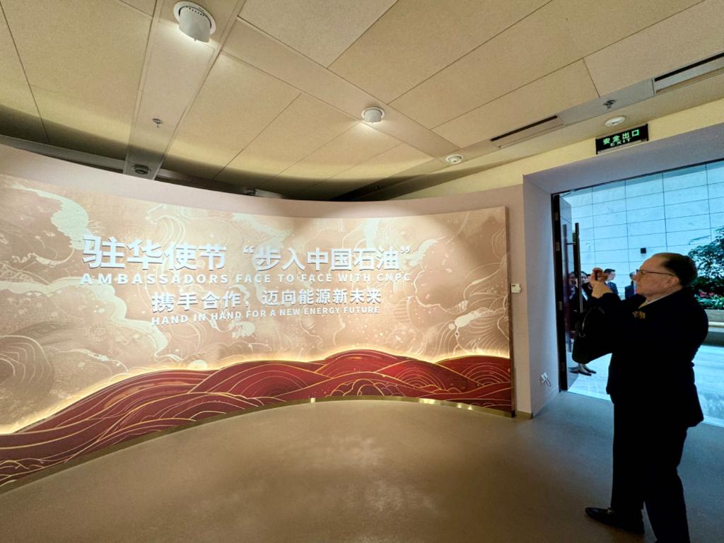 7月9日,驻华使节参观“步入中国石油”活动主题展厅。新华社记者 董雪 摄