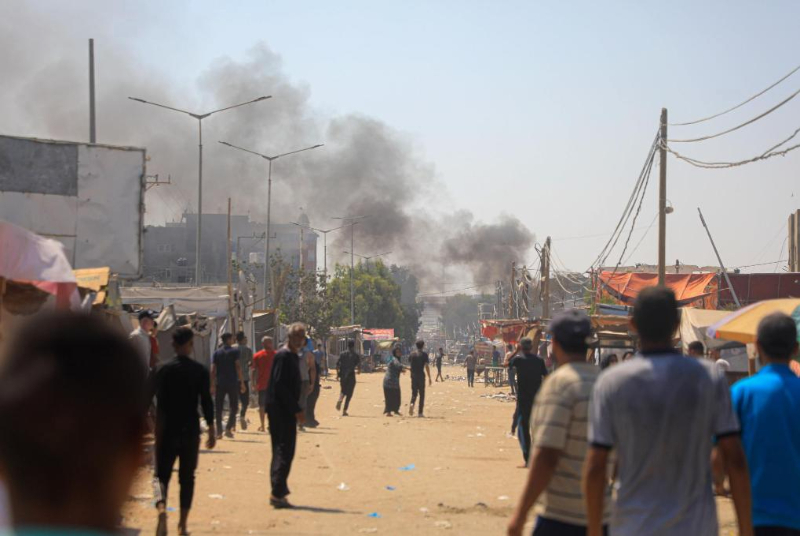 7月13日,在加沙地带南部汗尤尼斯的马瓦西地区,以军袭击后浓烟升起。新华社发(里泽克·阿卜杜勒贾瓦德摄)