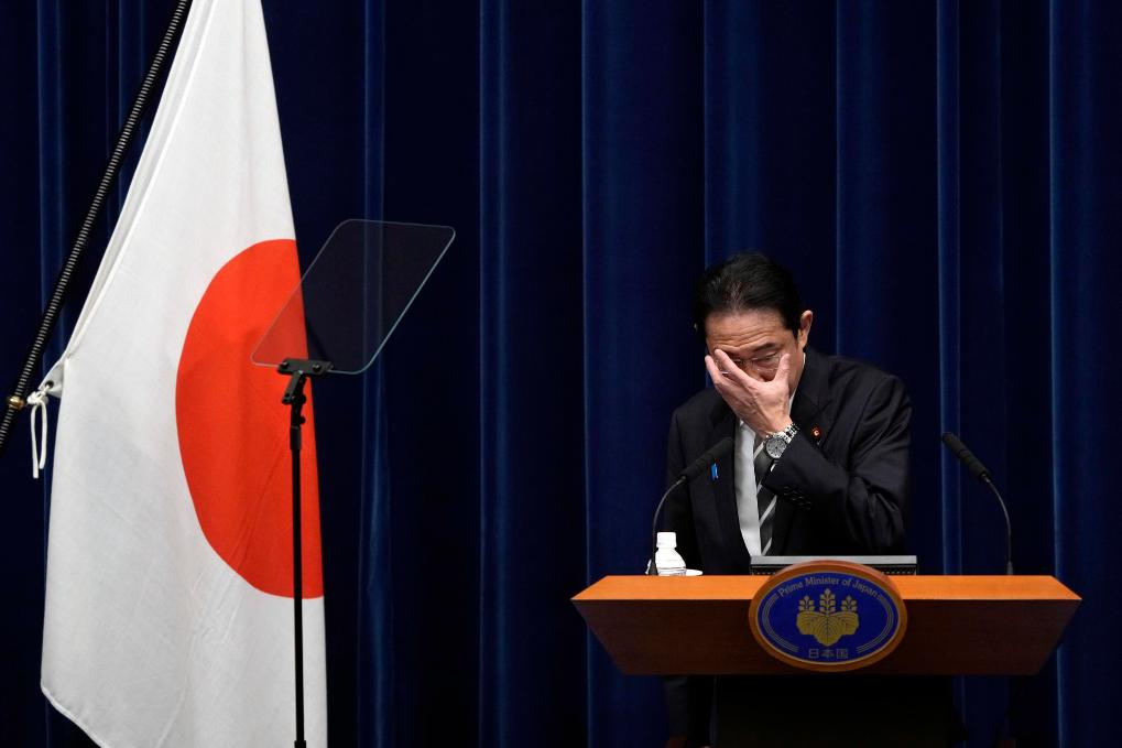 2023年12月13日,日本首相岸田文雄在日本东京首相官邸召开记者会。新华社发(Pool图片,弗兰克·罗比雄摄)