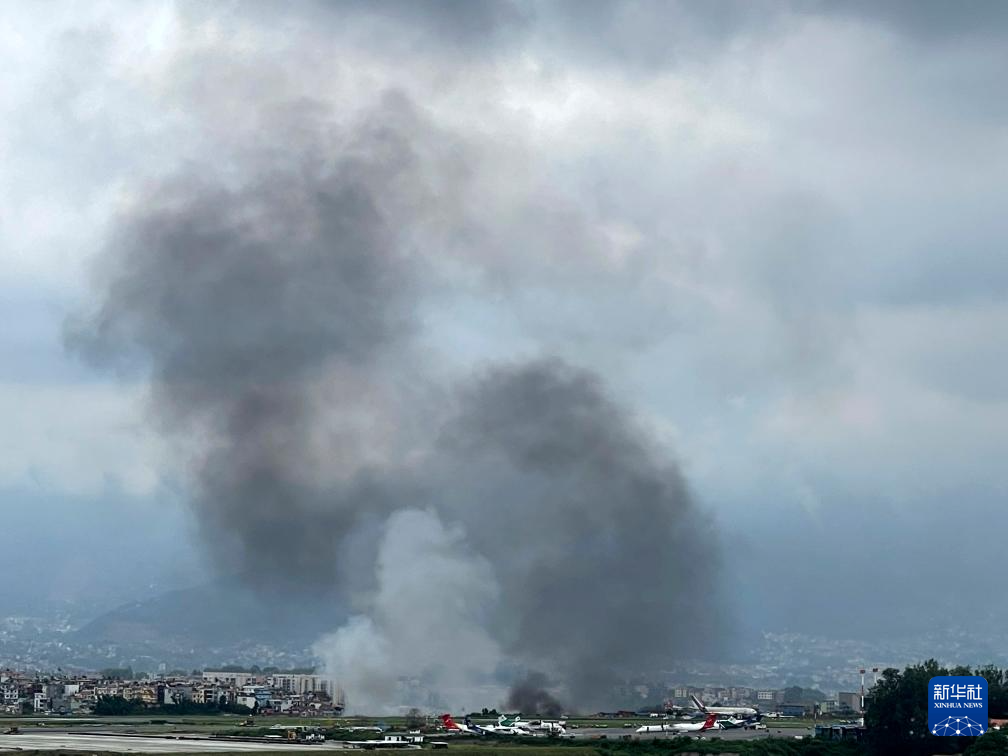 这是7月24日在尼泊尔加德满都特里布万机场拍摄的浓烟。目击者说,一架飞机在尼泊尔加德满都特里布万机场坠毁。新华社/美联