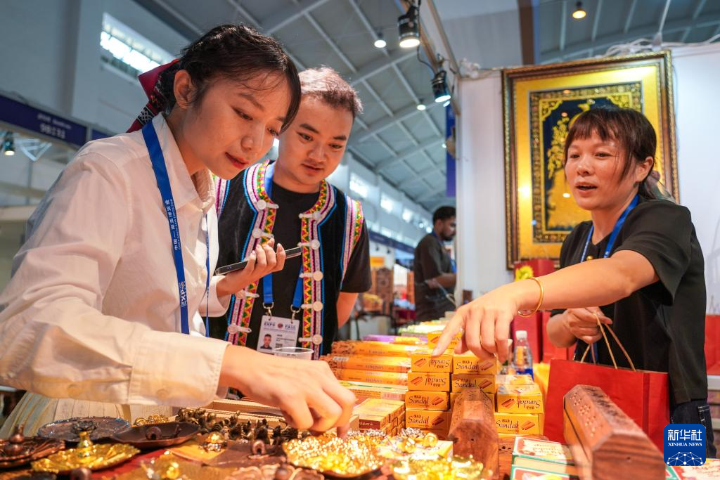 7月23日,两名女士在第八届中国—南亚博览会南亚馆挑选特色商品。